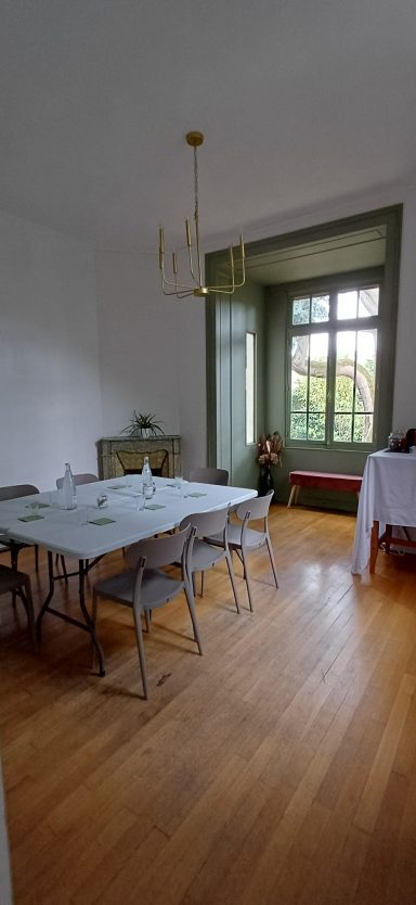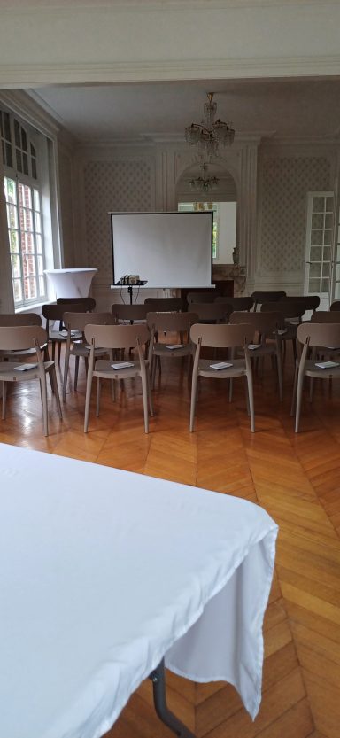 Notre salle de réception s'adapte à tous vos évènements professionnels! Réunion, cycle de formation, séminaire, team building... A votre disposition, un vidéoprojecteur, un écran blanc et un paperboard. Ces équipements, associés à des tables et des chaises modulables, maximisent l'espace et la fonctionnalité, créant ainsi une ambiance propice à la créativité et à l'échange d'idées.